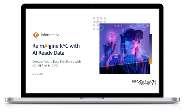 This on-demand session explores how enterprises can transform their KYC operations with a data-first, AI-powered approach. Learn how Informatica’s Intelligent Data Management Cloud (IDMC), Customer 360 Master Data Management (MDM), Cloud Data Governance (CDGC), and the synergy of CLAIRE AI and Mastech InfoTrellis come together to create smarter, more compliant KYC ecosystems.
